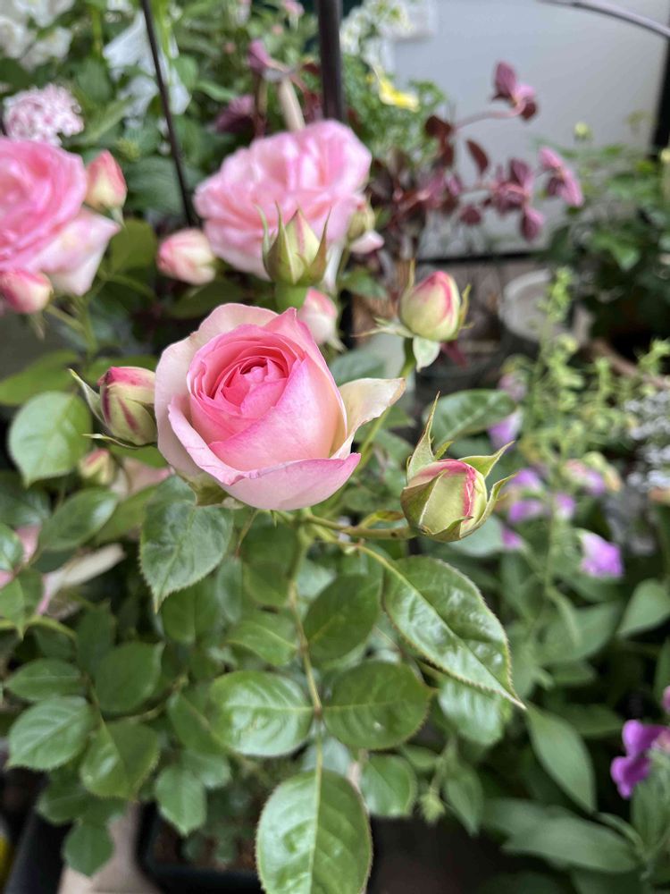実家は門代わりのアーチなもので…根元も陽当たりが良くて…🩷🩷🩷🤍ぐらい。
