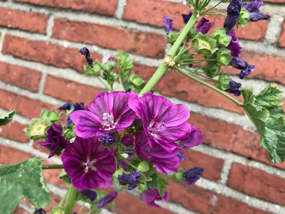 土にタネが混ざっていたのか、芽が出て花が咲きました。コモンマロウという名前だそうです😊