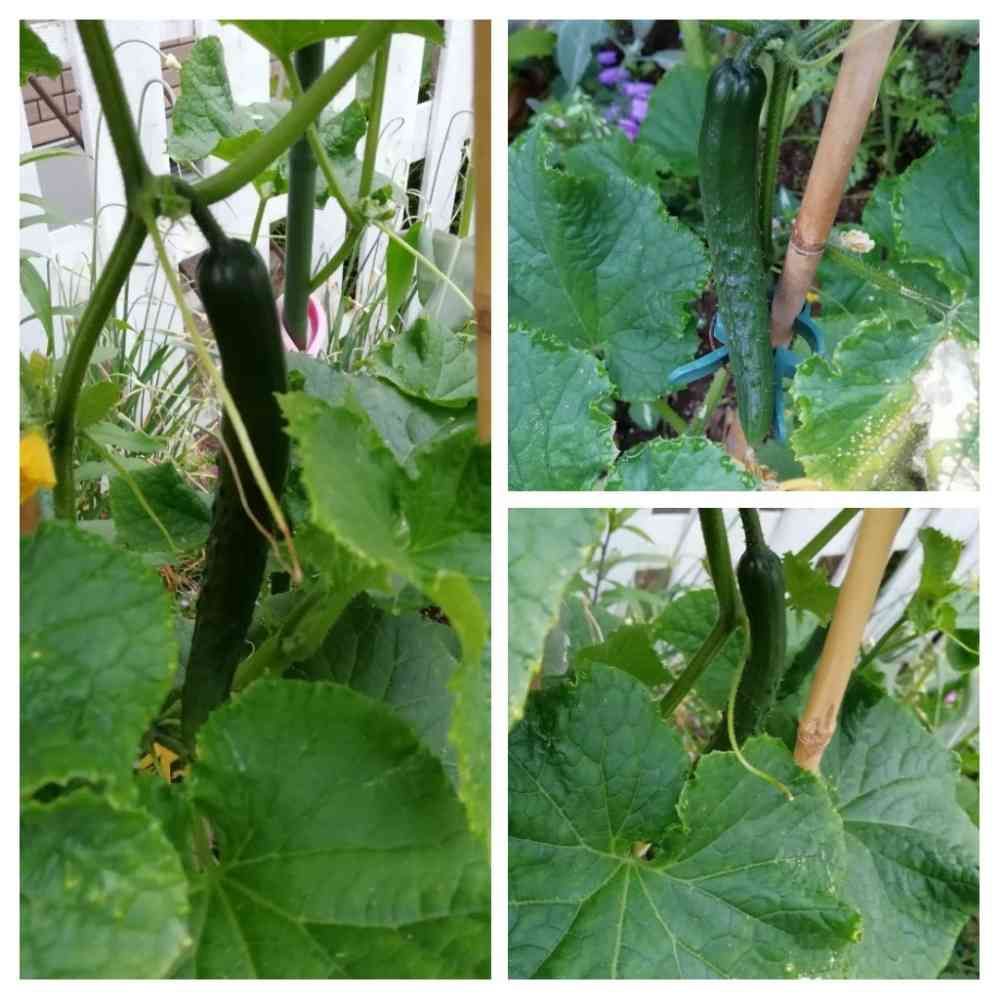 二本の苗からキューリが実りました😄寒く太陽が見えない毎日ですが 頑張って結実したようです👌