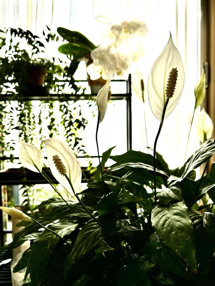 室内管理に切り替えたスパシフィラムにはたくさん花が付きました*.(๓´͈ ˘ `͈๓).*