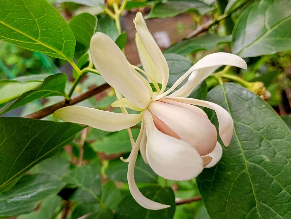4️⃣5️⃣「カリカンサス・ホワイトドレス」もまだ頑張って咲いていました。咲き始めの花は終わりましたが、今期 蕾40個余りの残りまでを全て咲かせるような勢い😊💓