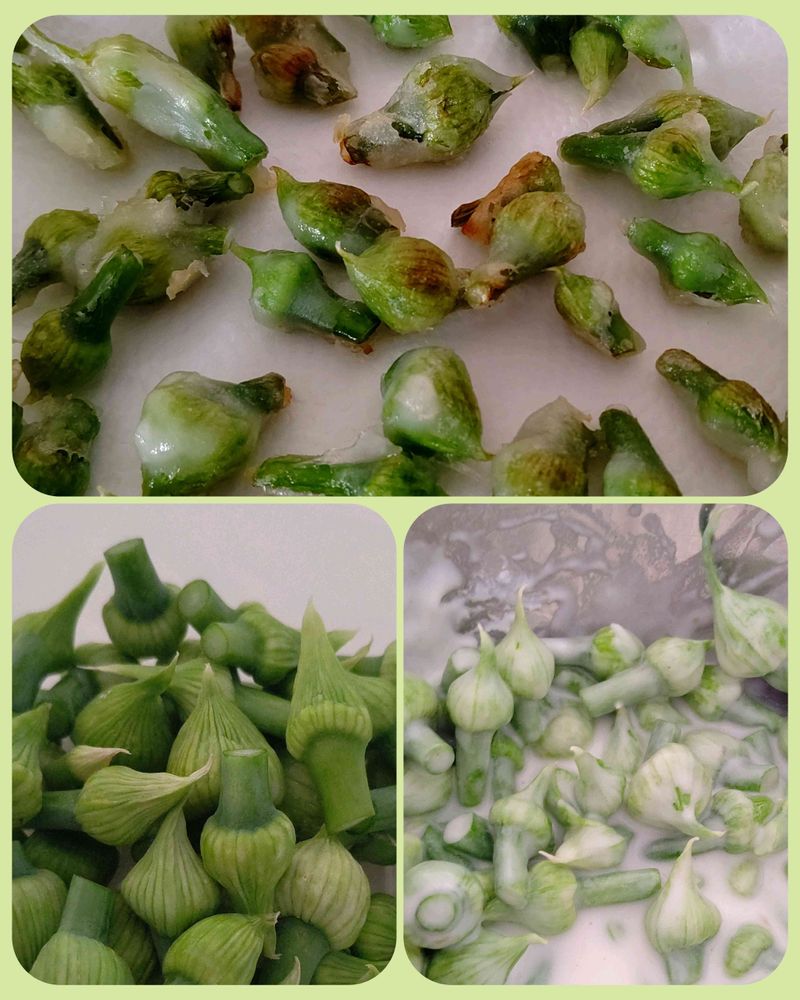 タマネギの葱坊主を米粉の天婦羅にしましたよ😃