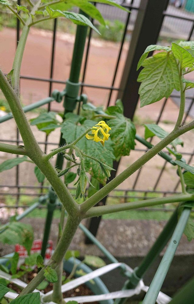 ミニトマトに最初の花が咲きました。
