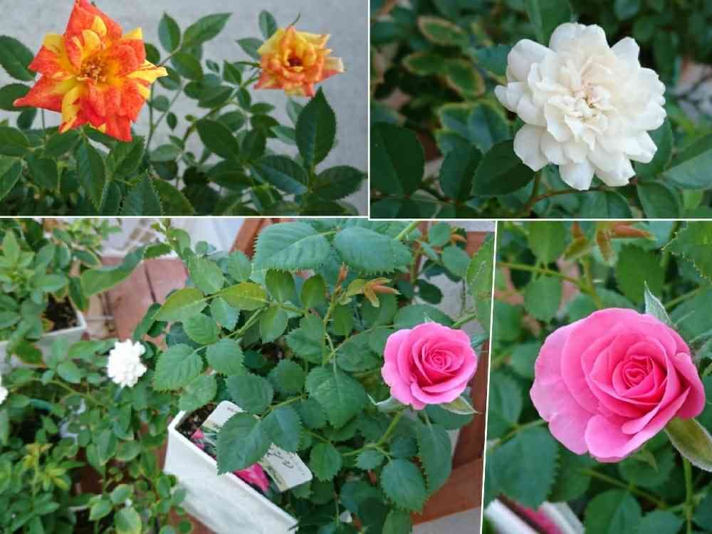 今日ミニバラのローマ・フォーエバーが咲き出しましたー(*≧∀≦*)(右下と左下のピンクの花)