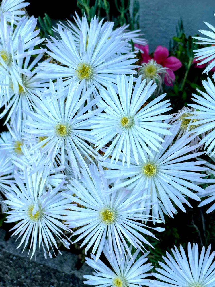 朝の散歩道,通り道のお宅の花壇,白いマツバギクの投稿画像