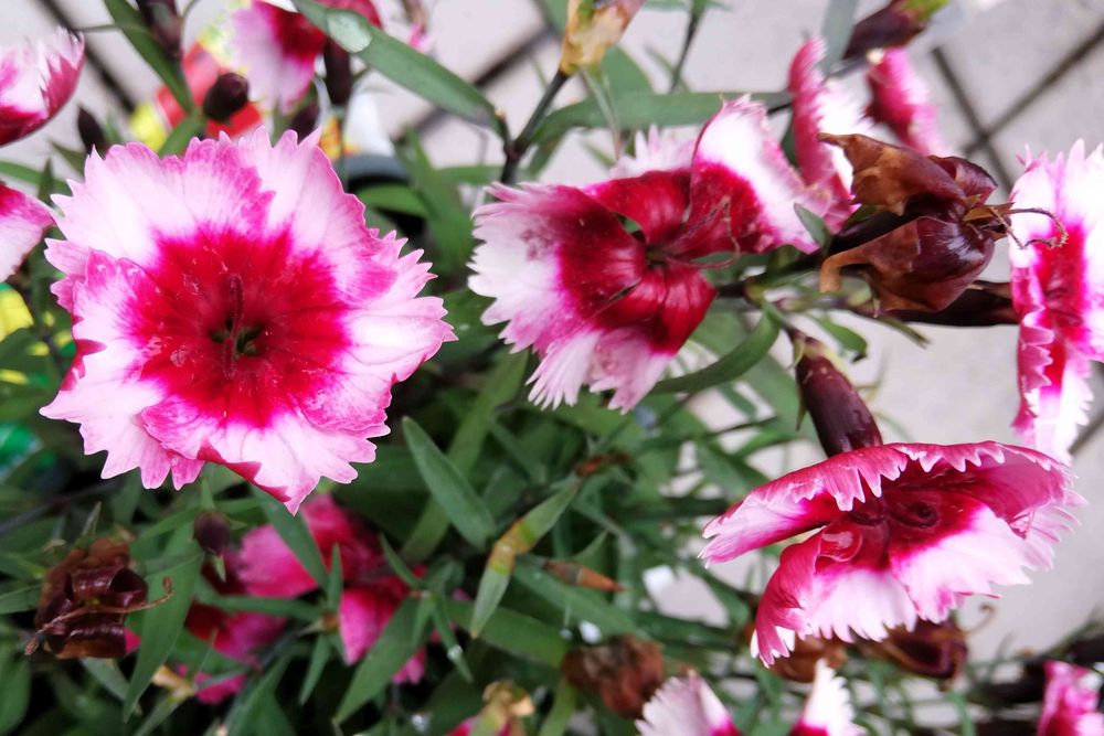 ナデシコの白地に花芯の周りと縁が紅い花 2024-05-14