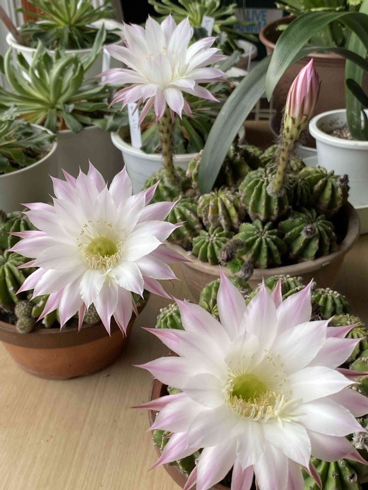 実はお迎えしてから20年くらい経つ立派なサボテンがあるんだけど、今まで1回しか花が咲いたことなくて、何が悪いか思案中💦。よく咲く子と並べて、刺激を受けて咲いてくれたらいいな( ᴖ ·̫ ᴖ )