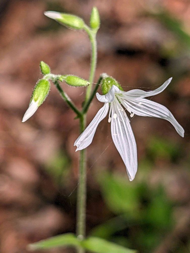 南アルプス早春花散策第2弾⑤ 新緑の雑木林の林床に何やら見慣れぬ大型のハコベがツンと立ち上がって花を付けていました。本州中部地方特産のナデシコ科 2024.5.21 山梨県北杜市 日向山