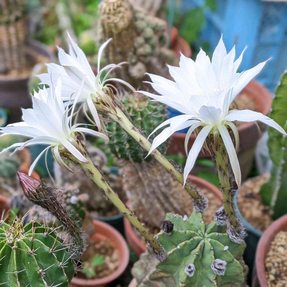 2015年にサボテンが花咲くことを知り、自分で買ってきたダイソーサボテンが次の年に咲いたのをきっかけに、どはまりしてます😅