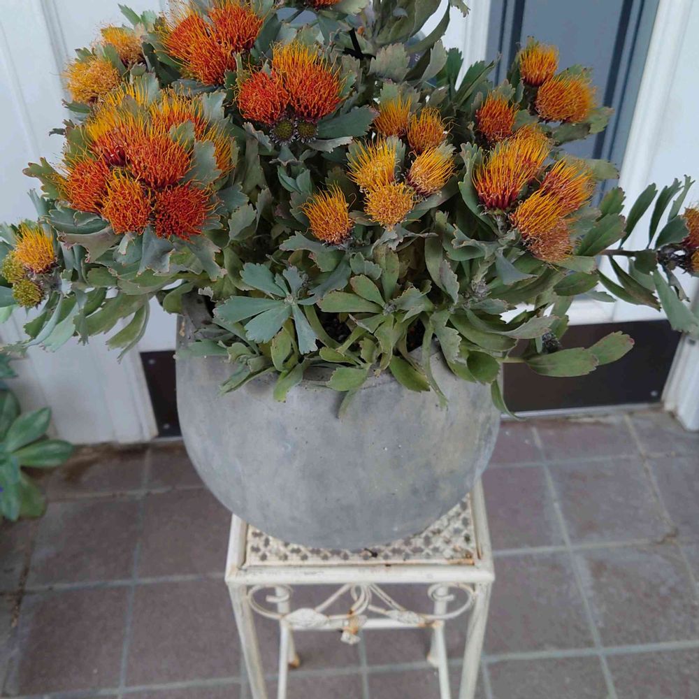 モリモリの花付きを先日のマルシェでアンティークな花台を手に入れたので上に飾って楽しんでます🎶