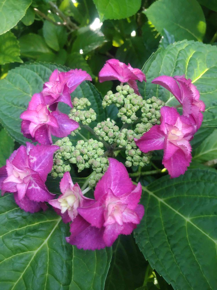 ④それから前に紹介してたヤマアジサイ『藍姫』はやはり紺色じゃなくて濃いピンクになりました