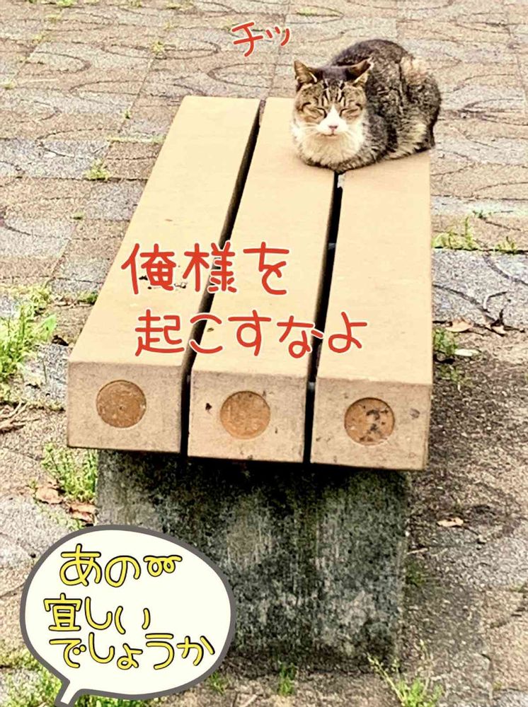 各ベンチにネコが日向ぼっこ🐱‼️