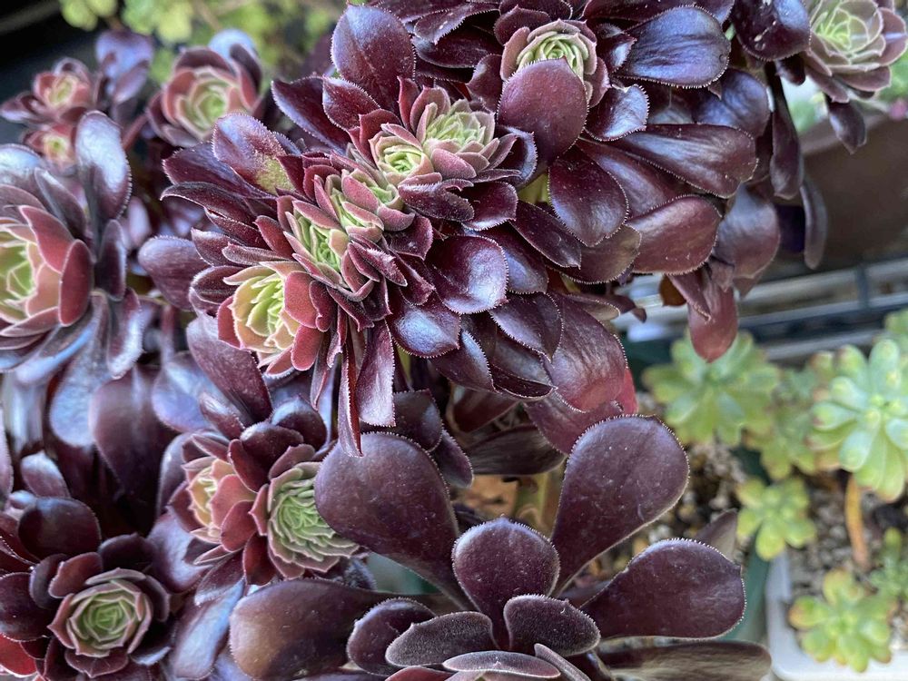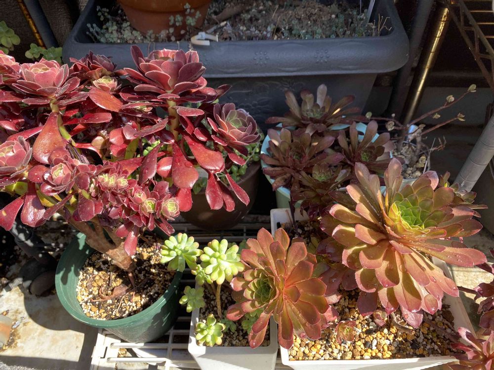 ベロア綴化(24.3.15お迎え)と、センポニウムシエナ(23.11.16お迎え)真ん中に乙女心(たぶん)😆