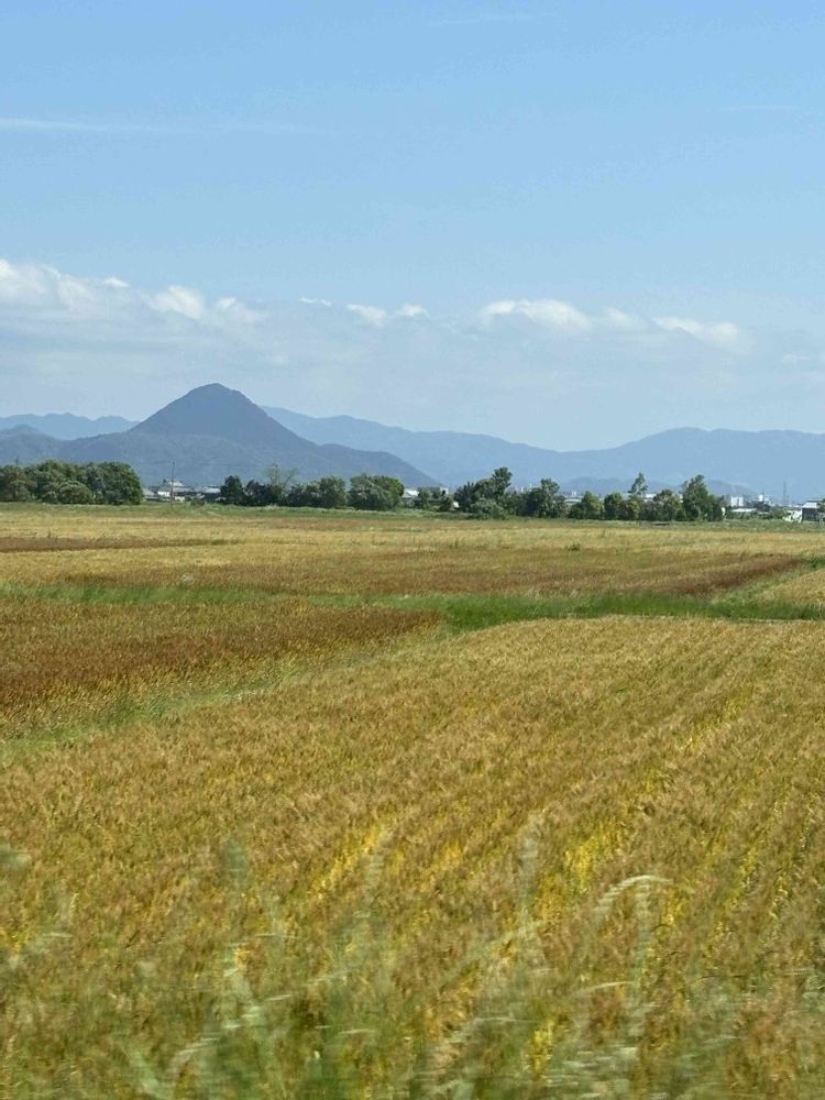 麦も栽培も盛んでした。麦畑と遠くに見える近江富士(三上山)