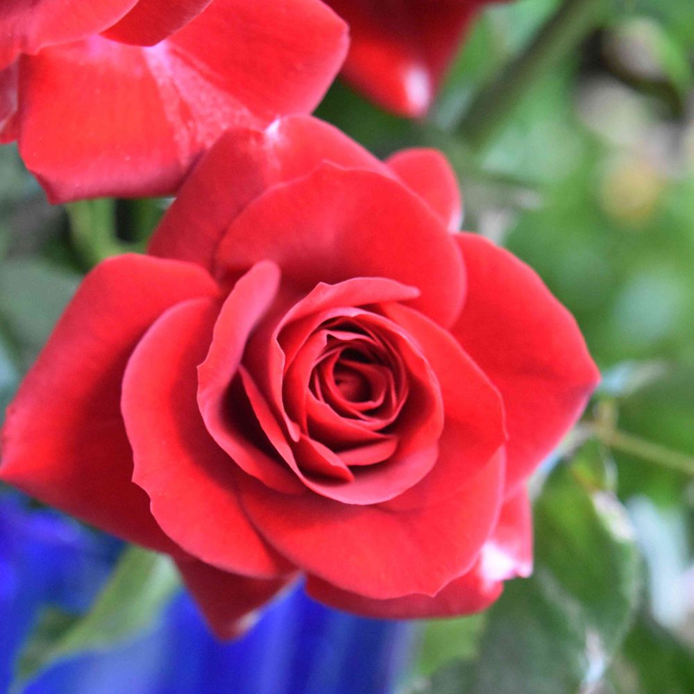 赤い小ぶりなバラ、ニコロパガニーニ。初めて咲いたよ