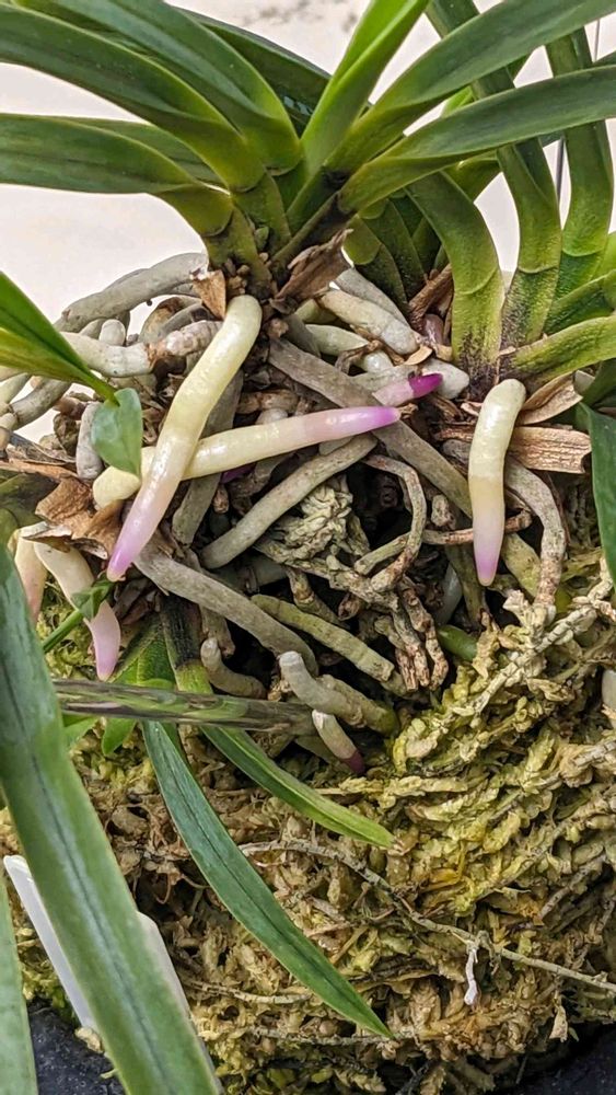 昨日に続きフウランの根を紹介します。この時期のフウラン棚の見回りが楽しくなってます。この品種は最初はご覧のように藤色で伸びてきて日ごとに鮮やかなルビー色に変化する品種です。
