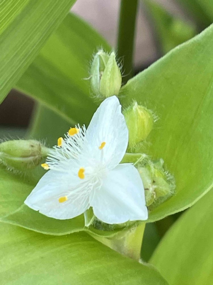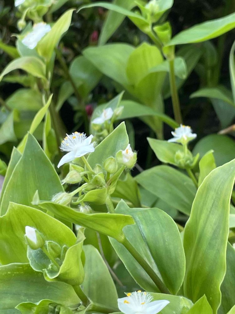 真っ白なトキワツユクサ、初めて見ました。清潔感があって素敵ですね。