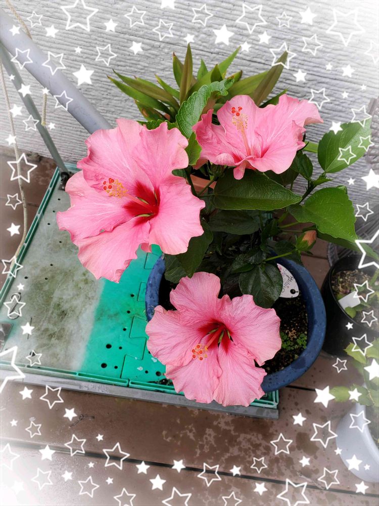 ベランダでアドニス🌺が3輪一緒に咲いています⤴️