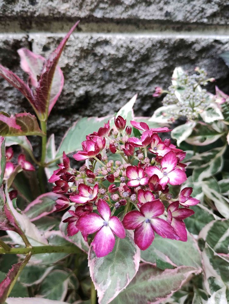 斑入り葉の紫陽花花色もいいですね🍷