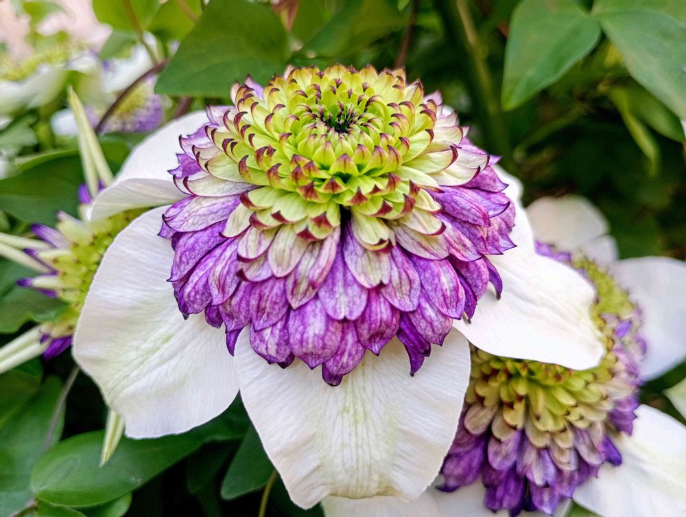 白色は萼、紫の花弁にも少し厚みが出てきました。モコモコ花弁までは💜もう少しカナッ😊