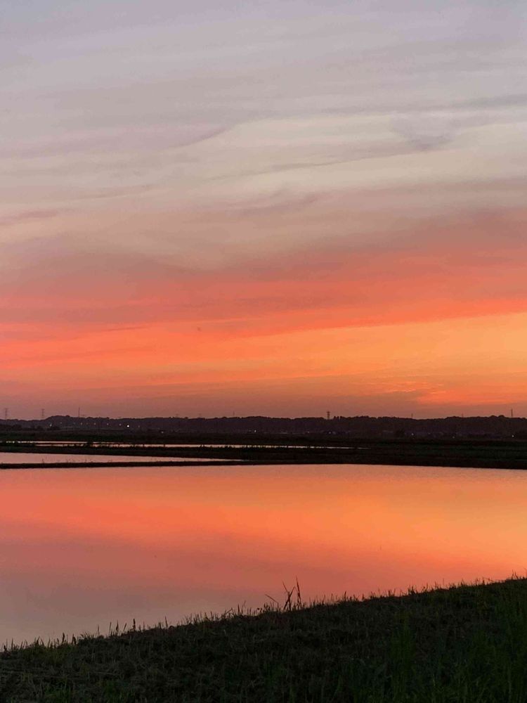 水田の水面に反射する夕焼けを撮ることが出来ませんでした。