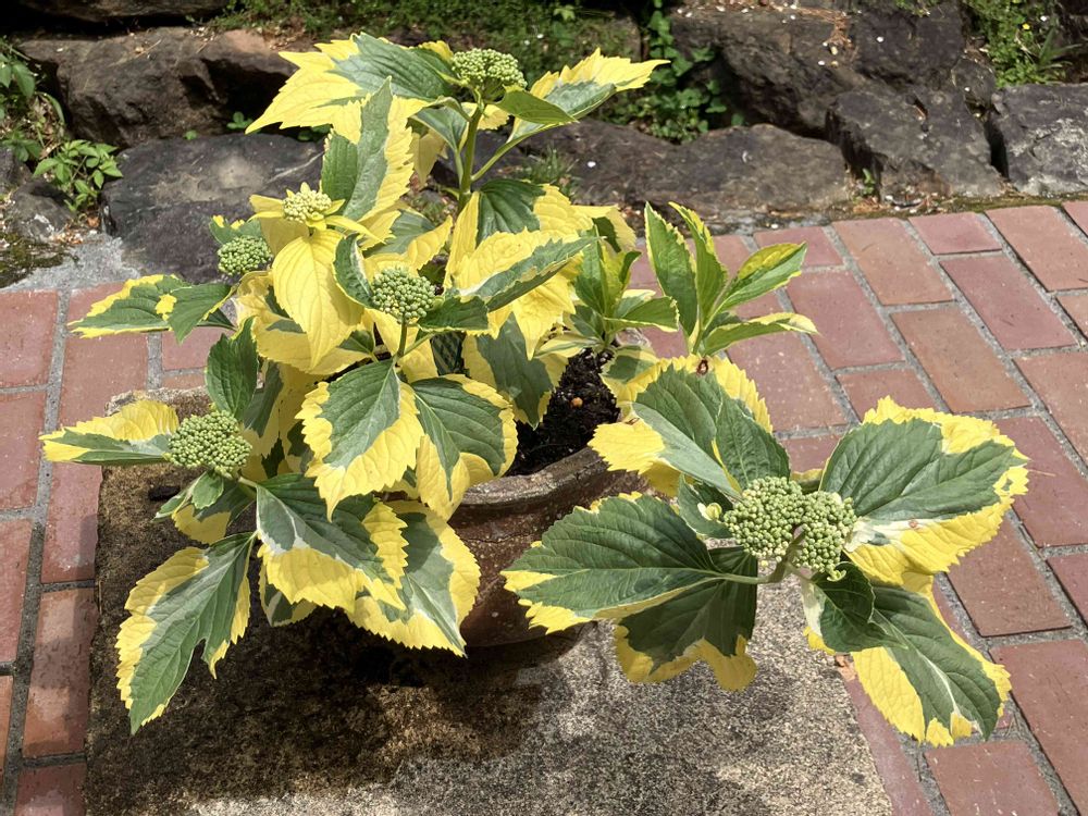 珍しい紫陽花のレモンイエローの葉っぱ🌿