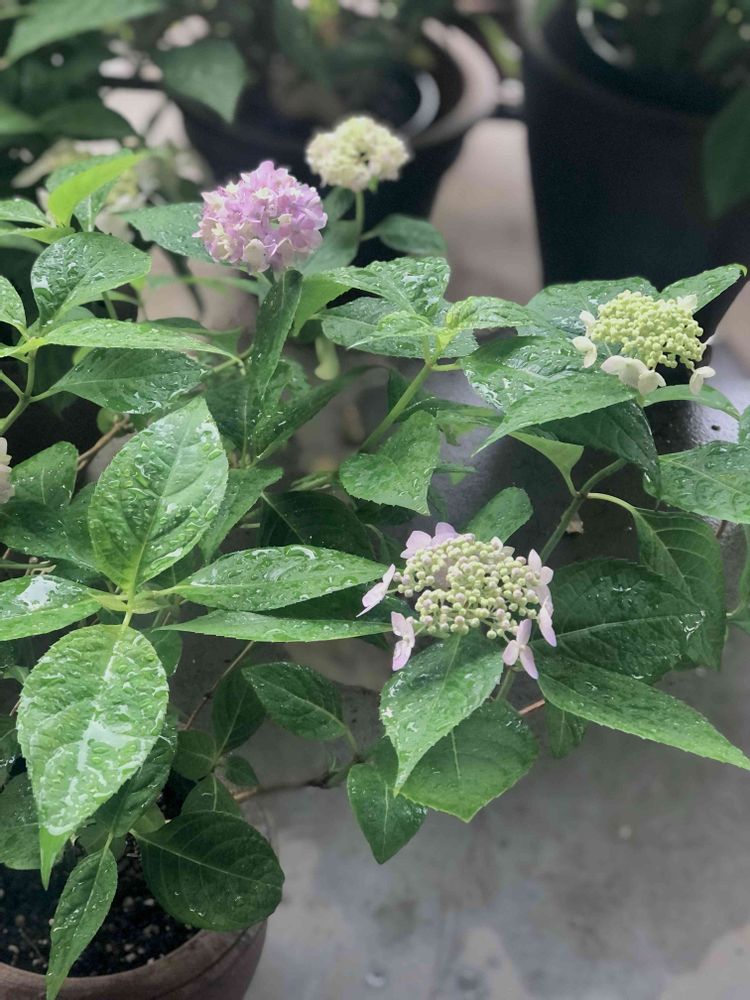 てててまりちゃん。一つの株からガク咲きとテマリ咲きの2種咲きに。