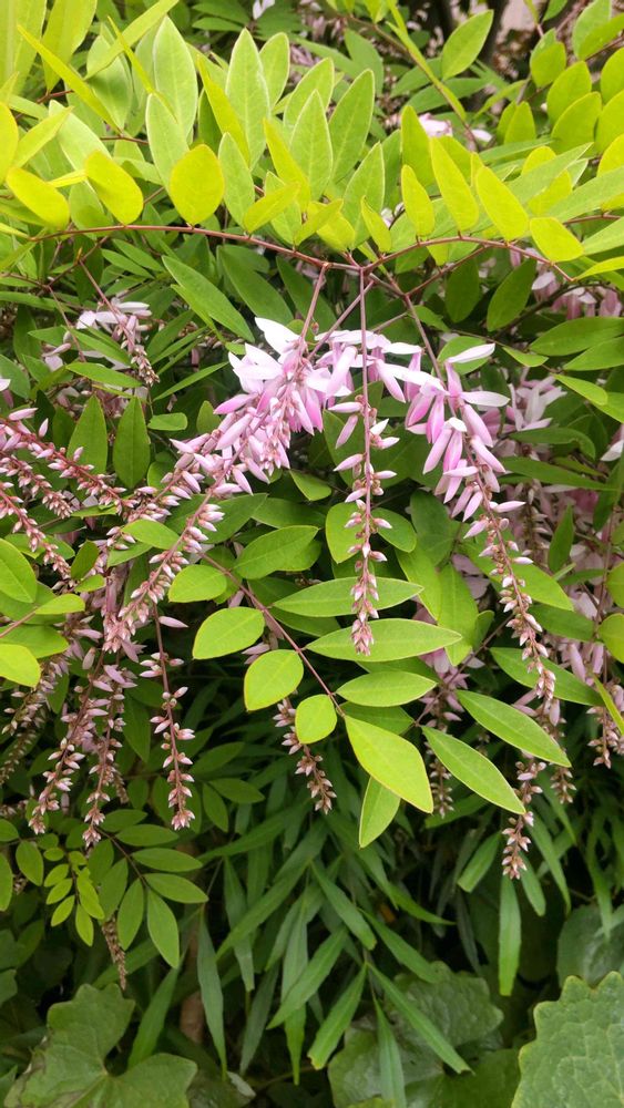 フジ(藤)に似た ちっちゃな花を咲かせますが 弦が伸びることは無く コンパクトな樹形にまとまります。