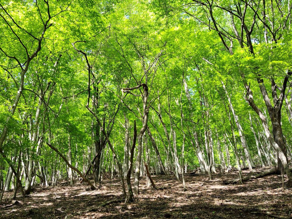 新緑の落葉樹は目に優しく、葉っぱの隙間から差し込む光が心地よいです😄