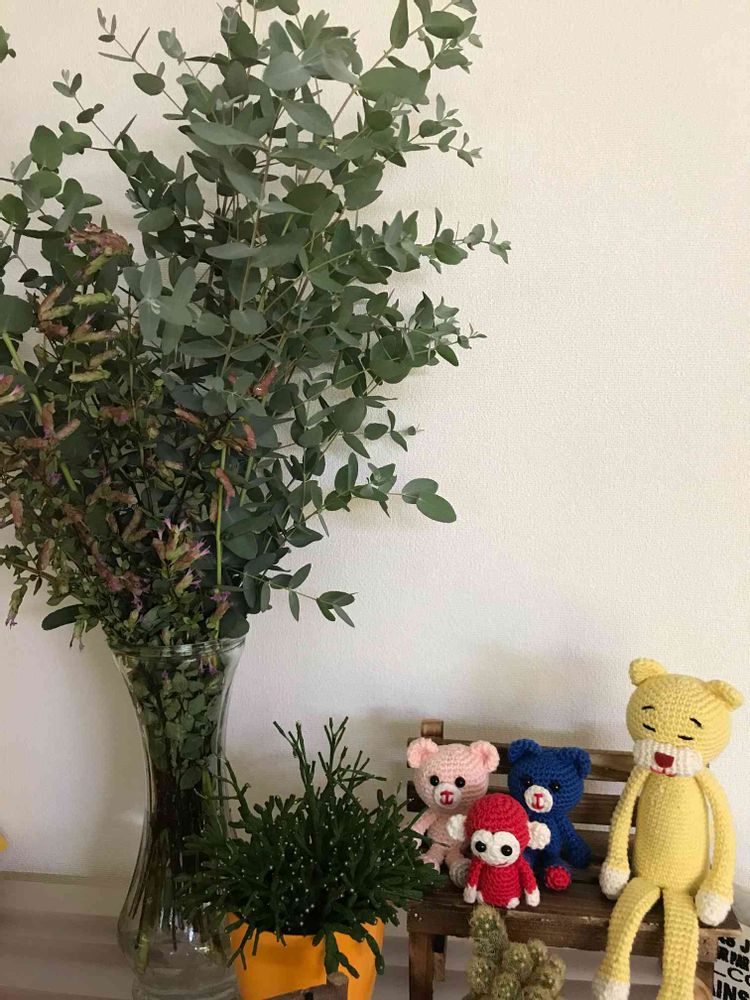 切り戻ししたユーカリとオレガノブリストルクロスを部屋に飾ってちょっと涼しげ.•*¨*•.¸¸♬