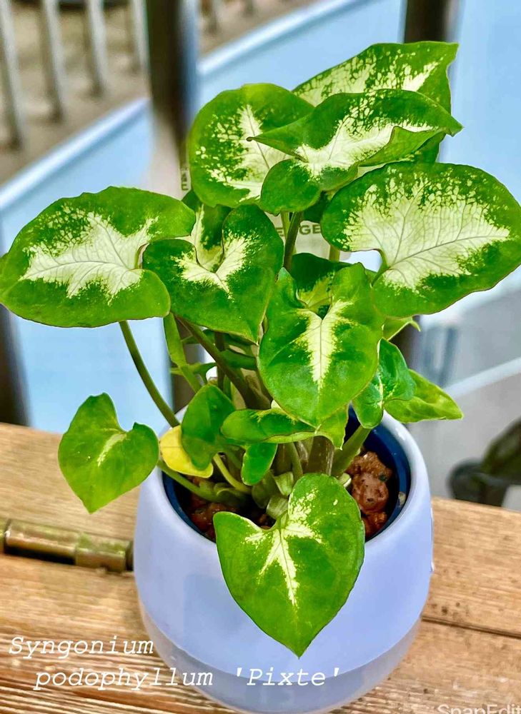 今日のお花になっている昨日の「アグラオネマ」、今日の「シンゴニウム」、どちらもサトイモ科の植物です🪴