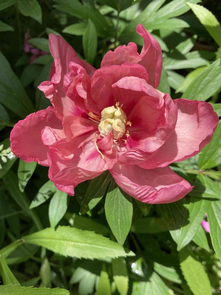 ハイブリッドシャクヤク。一株でピンク、オレンジ、赤、黄色と様々な色合いで咲くのだそうですが、今年は一つしか咲かなかったので摩訶不思議な旅にはなりませんでした。来年に期待します。