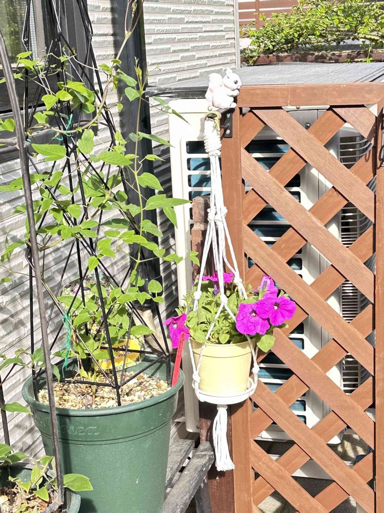 トレリスあるとすぐ吊るしたくなって😁室外機が見えなくなって一石二鳥🥰