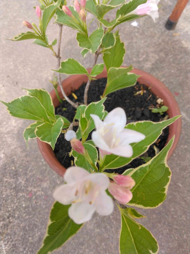 花友からいただいた箱根ウツギ💐 さし木にしたら花咲かせてくれました 蕾のピンク色きれいです