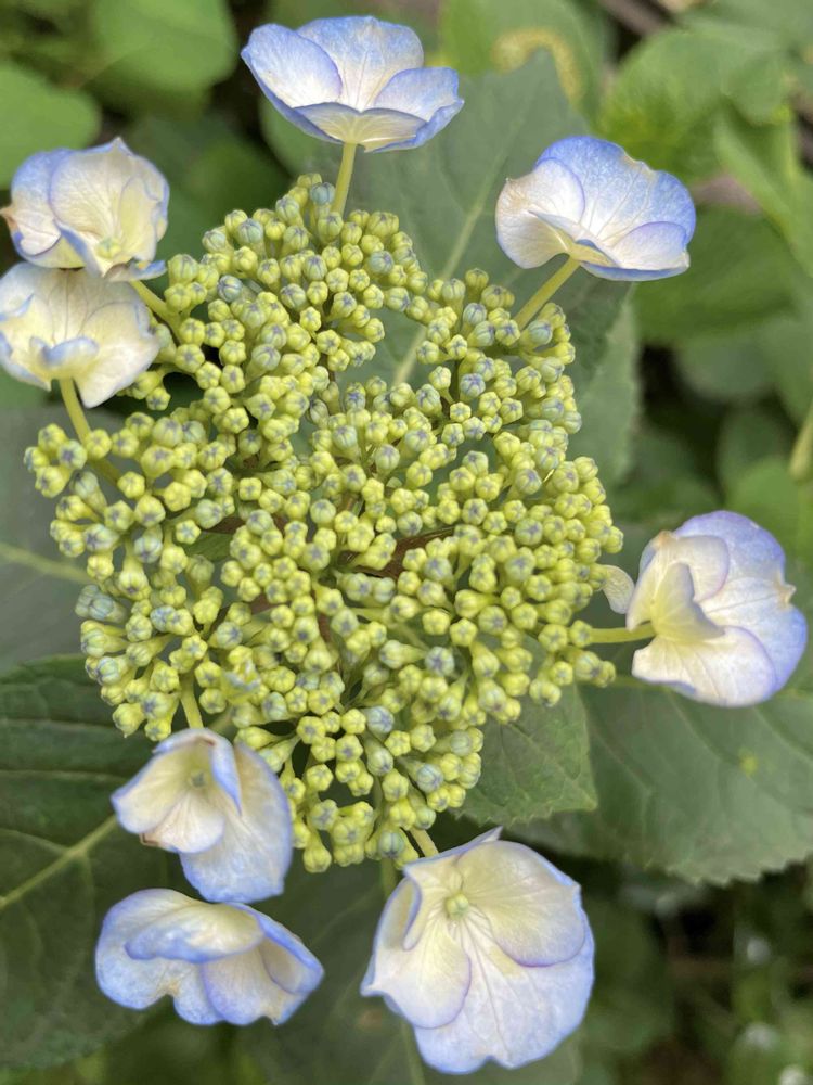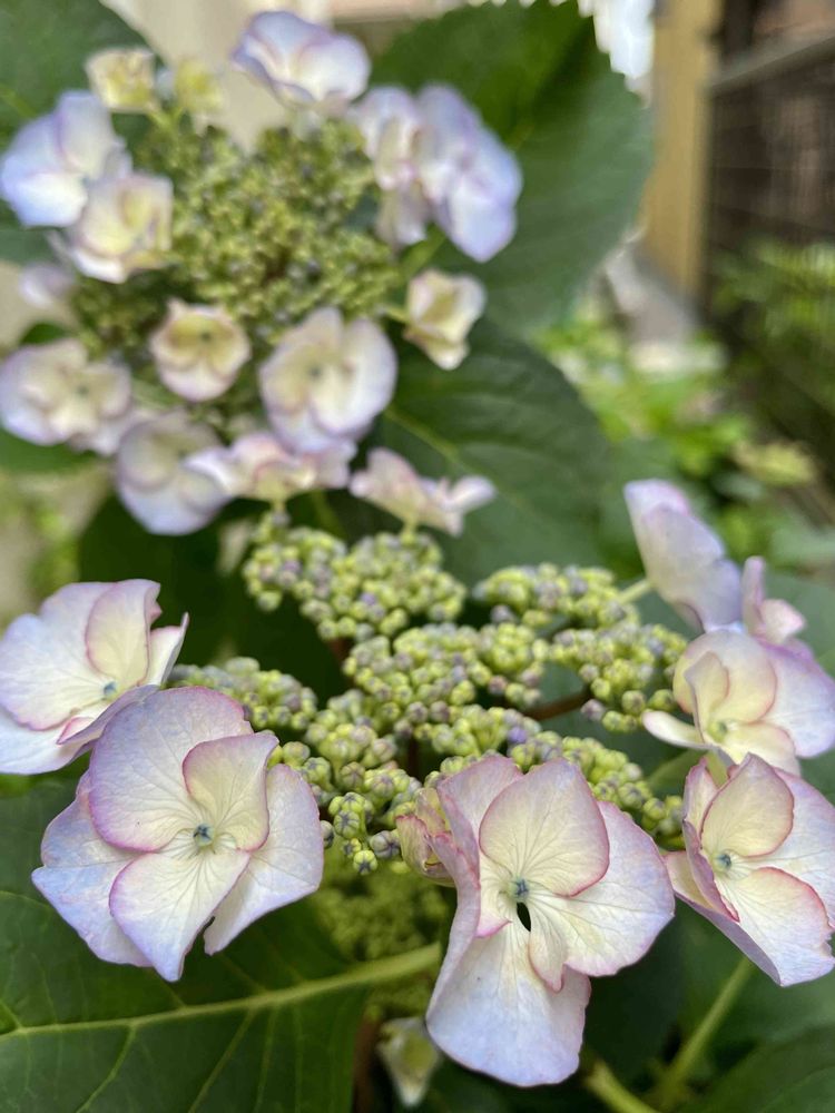 紫陽花・空色のしずく💠綺麗になってきました🙌一枚目は自分の背より高くなりすぎたコをくいっと寄せました💦無理させてごめんね(*_ _)՞՞