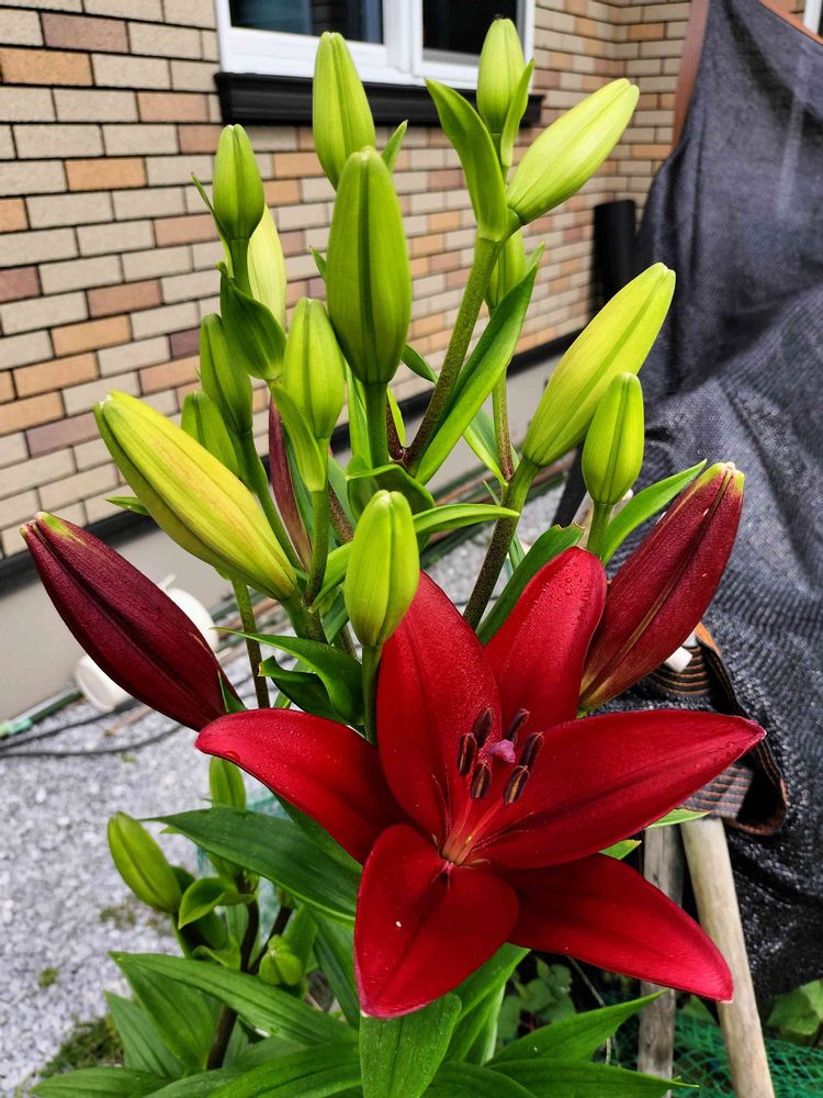 それ思いますよね…全部1本から出てる蕾なんですよ…15個かな…本当に全部咲くの?って思いますけど、スカシユリ強いし咲くんだろうな。蕾が赤く染ってから3日くらいして開く感じです。