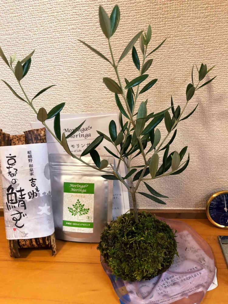 思わず植物に前で足が止まり、オリーブの木の苔玉を衝動買い。