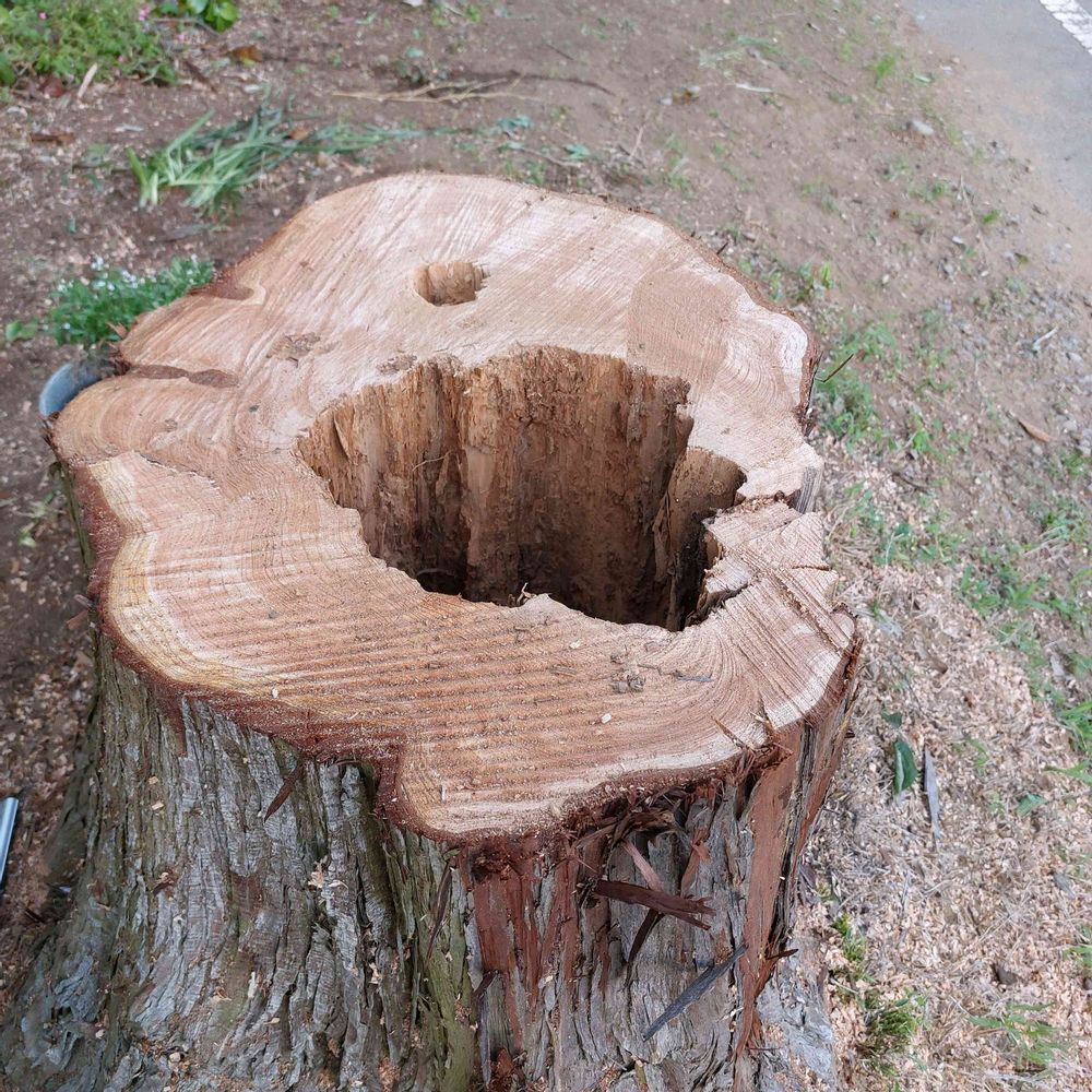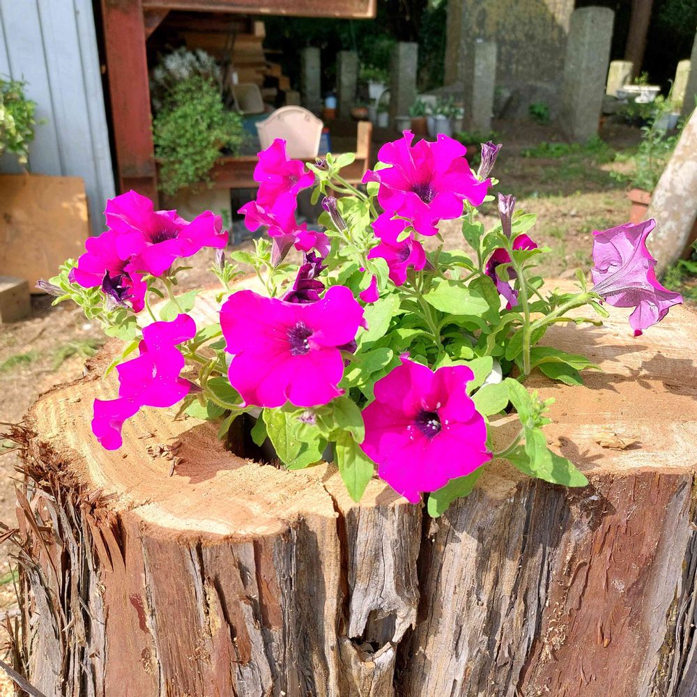 伐採してみたら、ほら穴で、丁度鉢植えが、ピッタリ🌸🌸