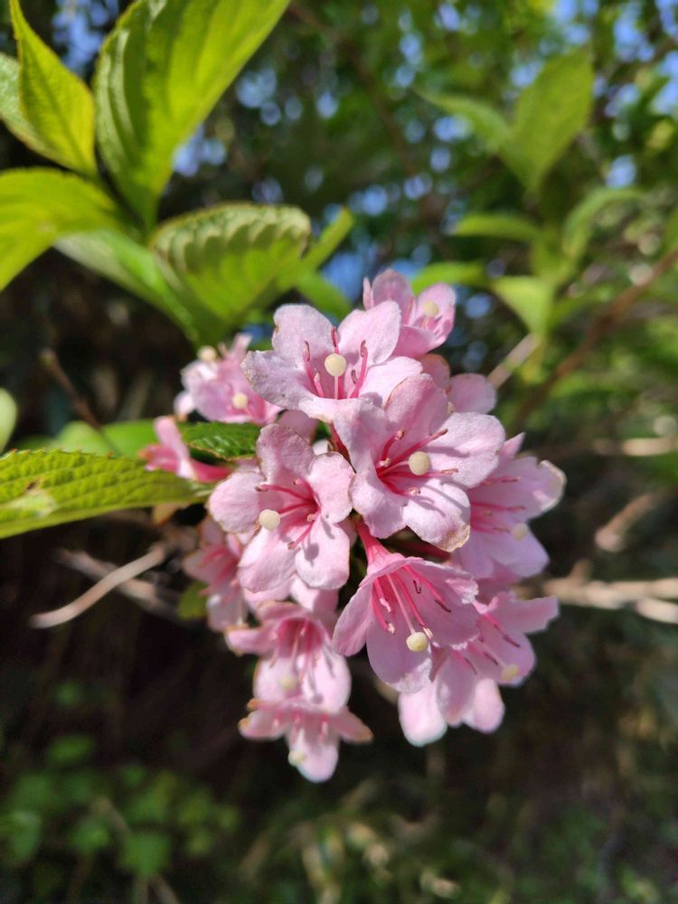 目が痛くなるような新緑。タニウツギがたくさん咲いていて😊✌️