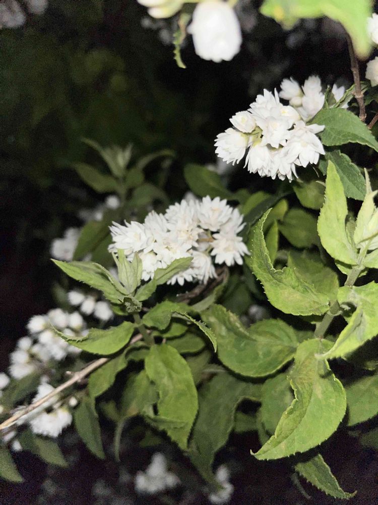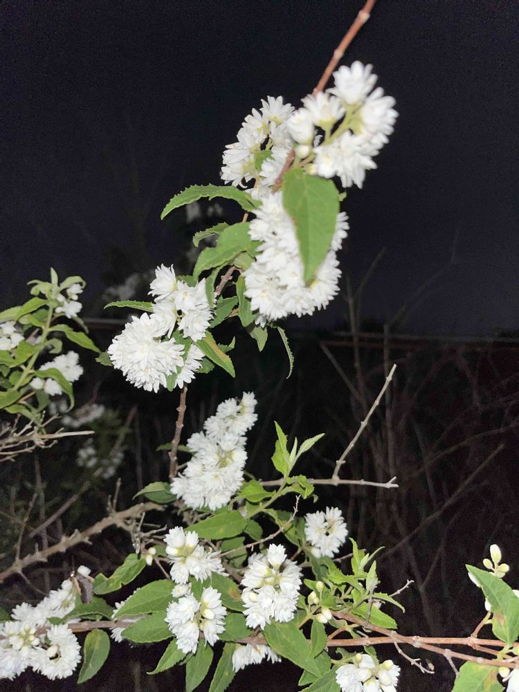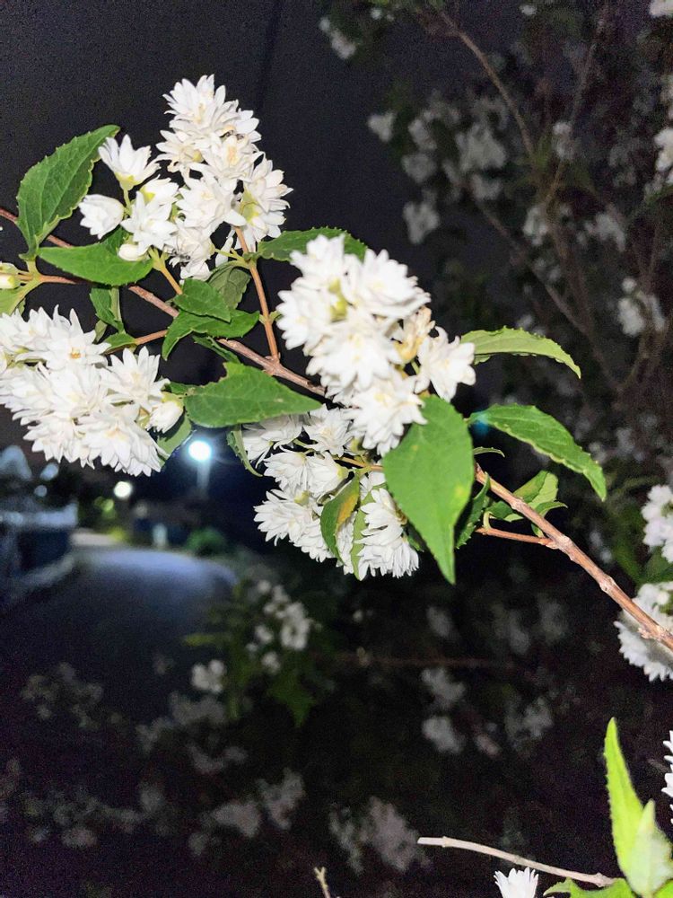 今日も少し夜、外を歩きました♪♪🚶🌉😆👍 散歩道の脇に咲いていたこのお花は、八重咲のウツギの仲間でしょうか🧐🤔⁉ 綺麗でした🥰✨✨ わかり辛くてごめんなさい🙏