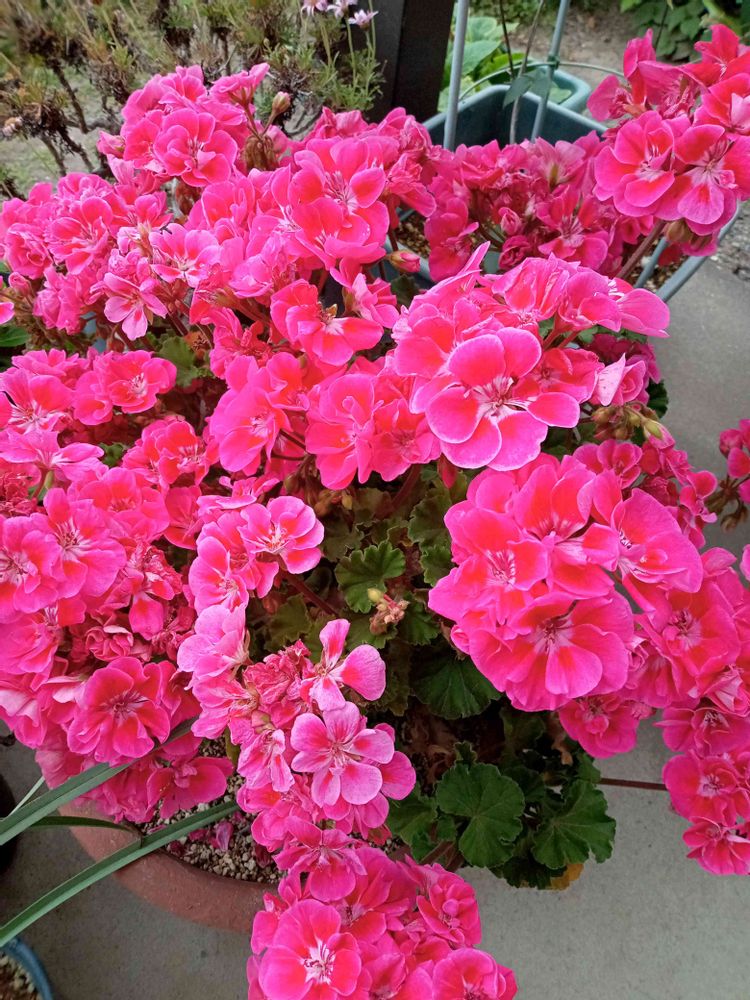 元気者のゼラニウム真っ赤な花を沢山付けています