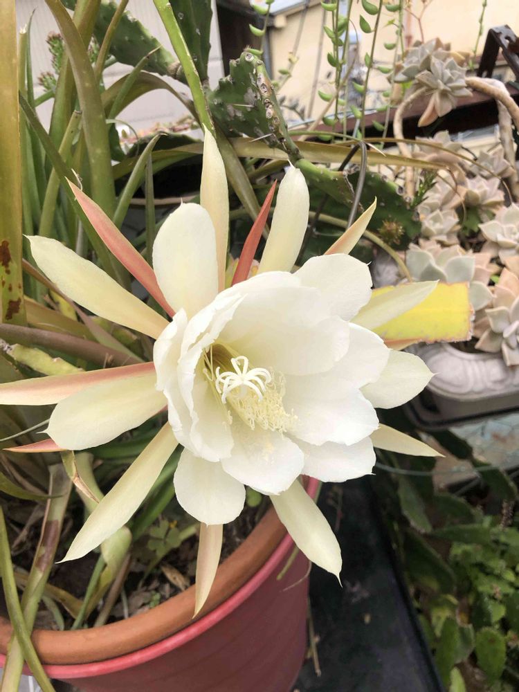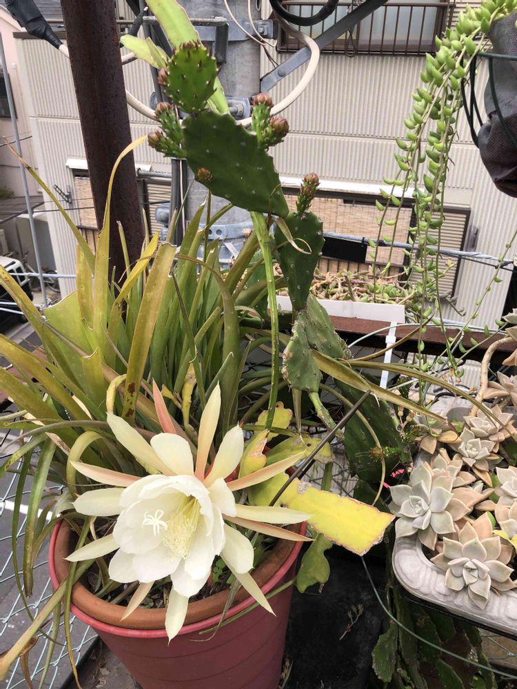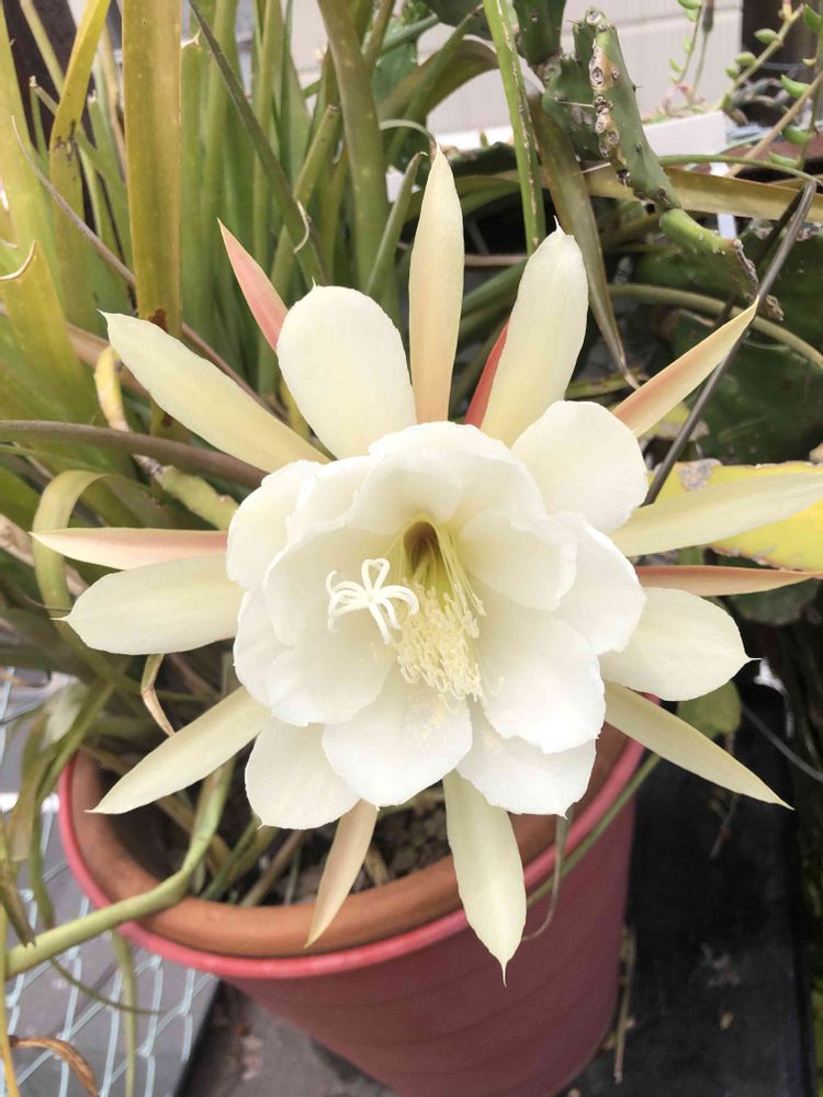 白花のクジャクサボテンが咲きました❣️1番最初のお花は大きいです。