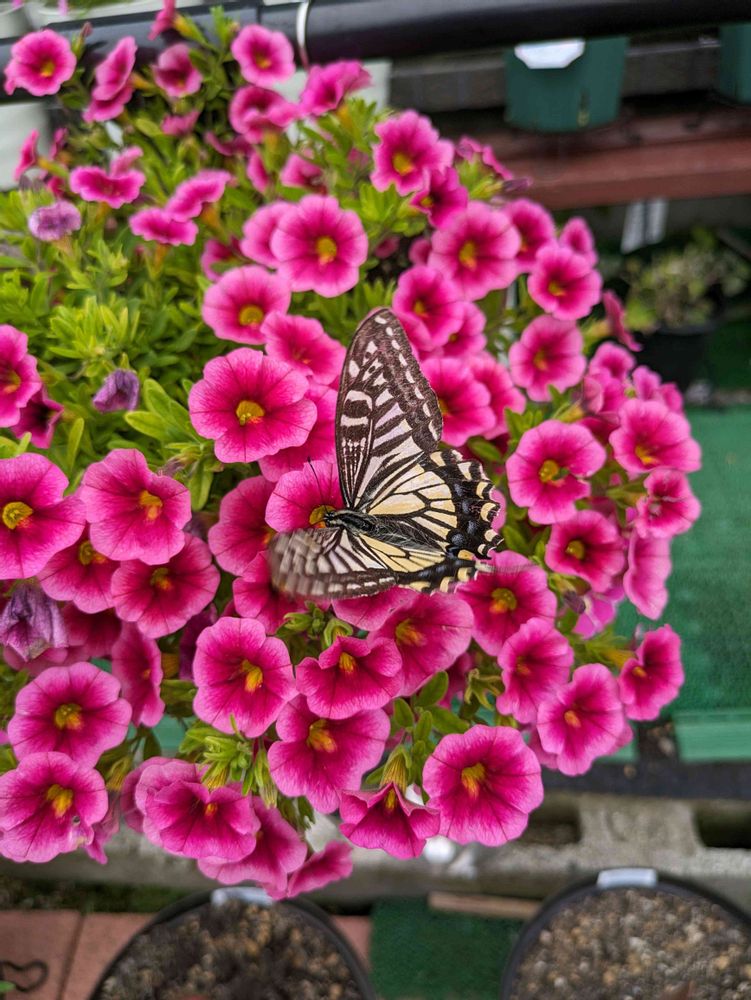 もりもりお花ちゃんにアゲハ蝶が来てくれました😄
