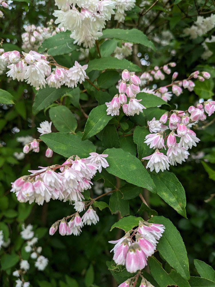 家にあるヒメウツギと似ていますが 背丈高く2メートルくらい少しピンクがかって八重咲 満開でした。ターシャのお庭のような空間目指した素適なカフェで優雅な心落ち着く時を過ごせました。