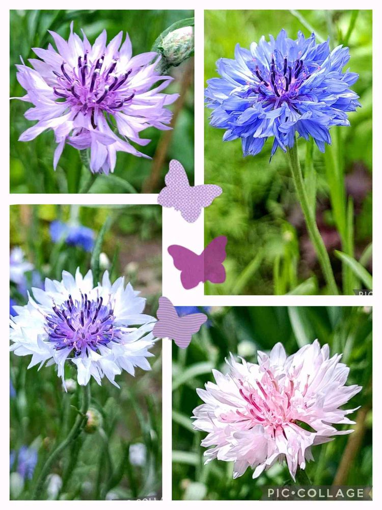 ①②昨年咲いたヤグルマギクです涼し気な色の花が風に揺れていました😌