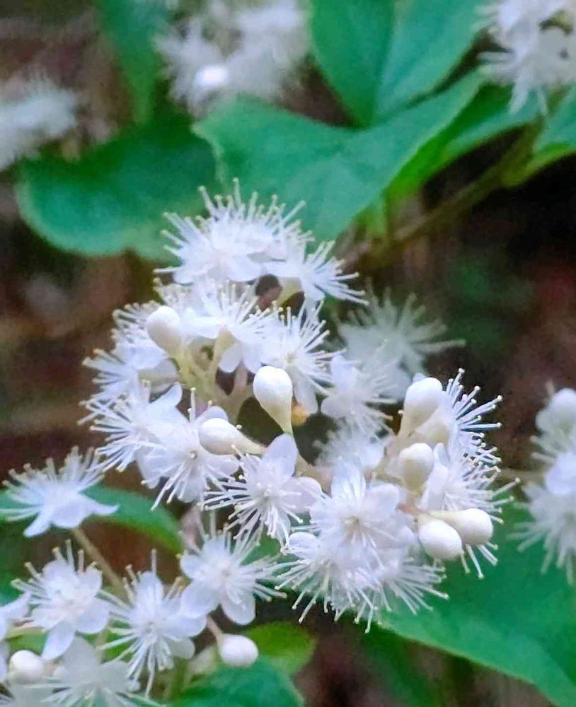 近づいてみると真っ白なふわふわとした塊に見えたのは、たくさんの雄しべが花冠を覆うほどに突き出ているからだった♡
