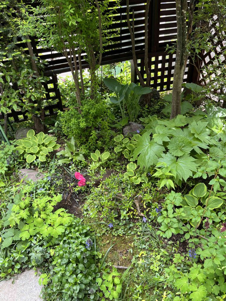 石を置いたり増えたギボウシを所々に植えたり山野草を植えたり何となく和風になりました〜🙆♀️