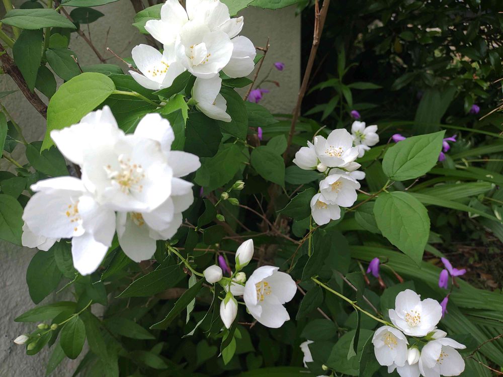 爽やかな庭のバイカウツギ⚪🟢