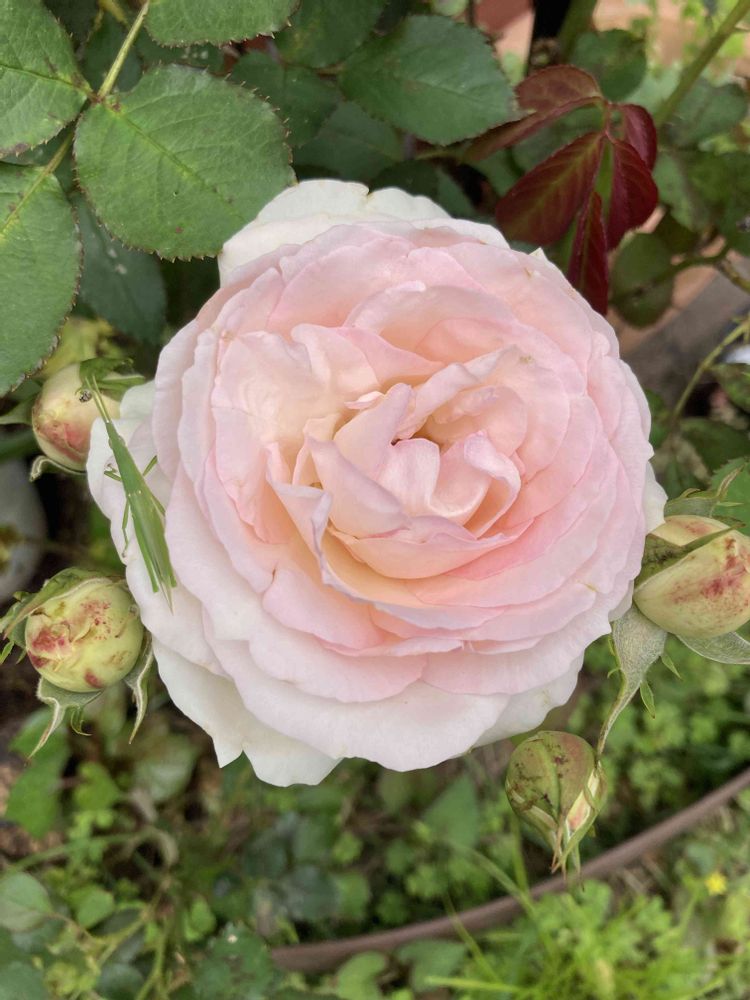 アーチの上の蕾がだいぶ開いてきました🥰(2階より)