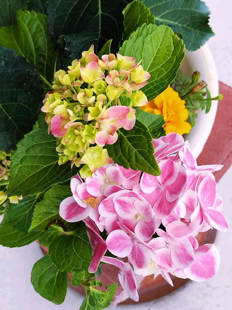 帰宅して早速全員液肥にドボンして、アジサイ2つはガッツリ鉢増ししておきました。マリーゴールドはトマトのコンパニオンプランツにしようかなーと思ってましたが、まだ決めていないのでとりあえず液肥につけたまま養生してもらってます。